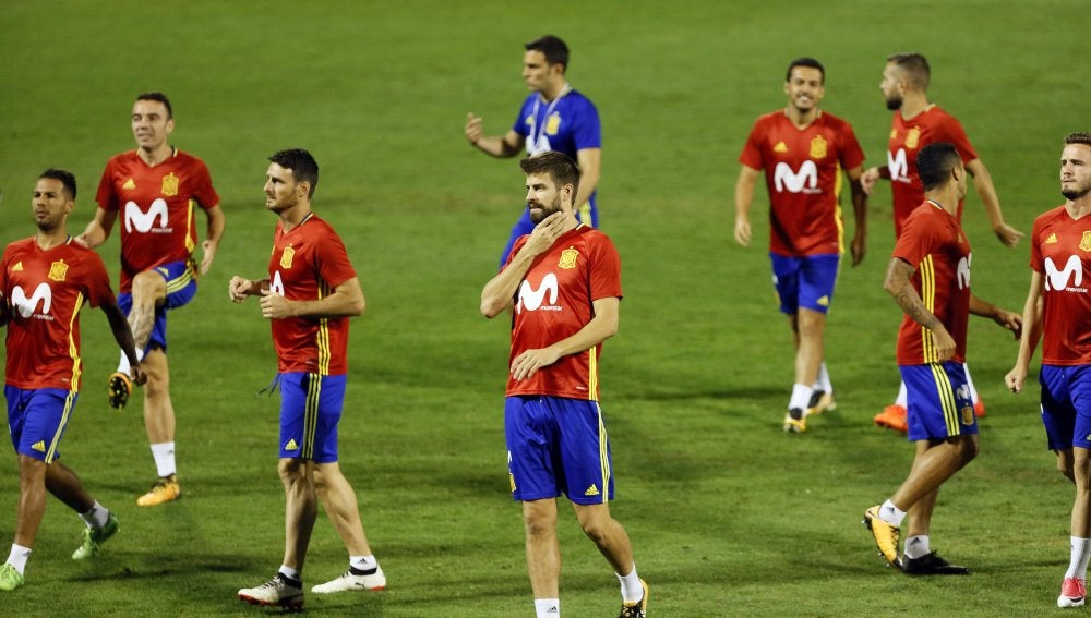 Sin embargo, en apenas unos segundos la grada se olvidó de Piqué para centrarse en aplaudir y corear las acciones de los jugadores españoles, divididos en dos grandes rondos en el centro del campo.