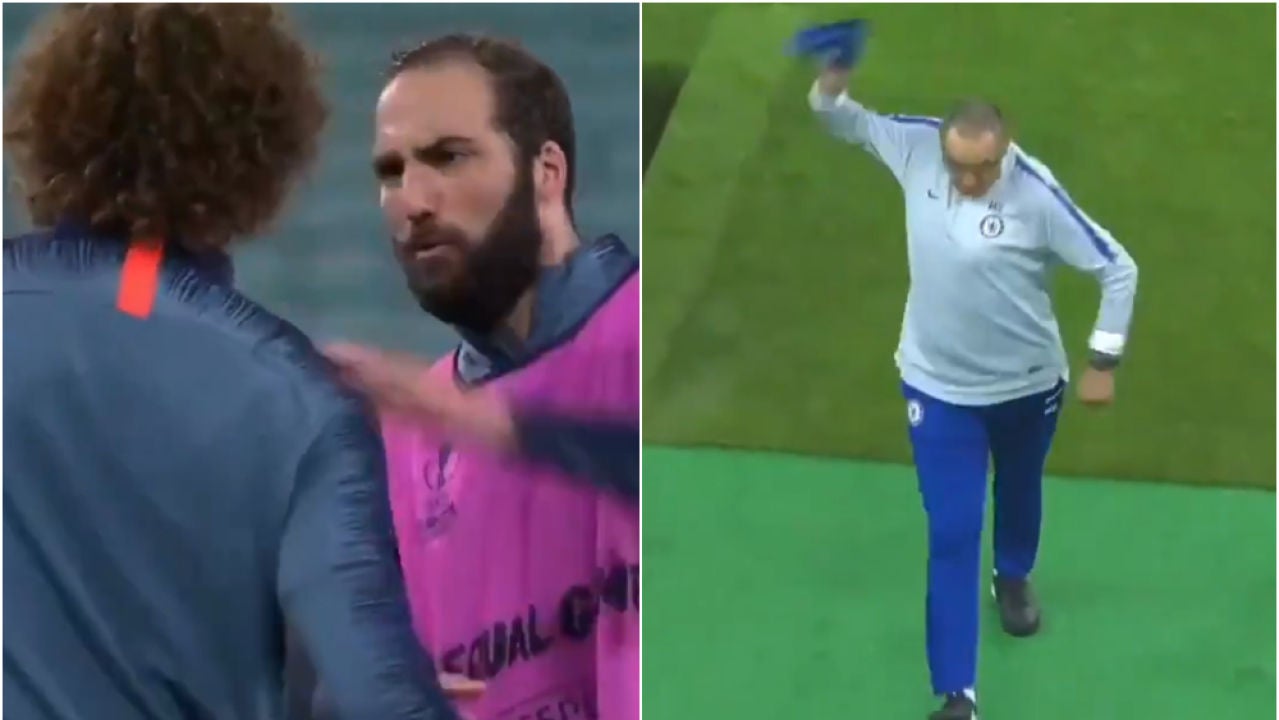 Lío en el Chelsea horas antes de disputar la final de la Europa League frente al Arsenal. Higuaín y David Luiz han protagonizado un pique en el entrenamiento que ha terminado con un tremendo enfado de Sarri y el posterior abandono del técnico de la sesión.
