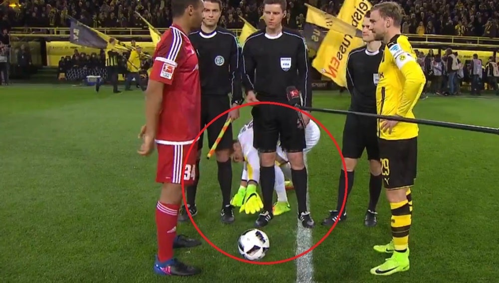 El portero del Dortmund, Roman Bürki, tiene una de las manías más raras vistas en el terreno de juego: el portero siempre coge el balón antes de que comience el partido para tocarlo. Su extraña manía se ha hecho viral en las redes por lo cómico de las imágenes y las reacciones de compañeros y árbitros.