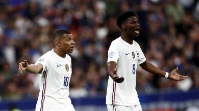 Kylian Mbappé, que según desveló Aurélien Tchouaméni intentó convencerlo para fichar por el PSG en vez de por el Real Madrid, reaccionó con aplausos a la presentación de su compañero de selección como jugador del equipo blanco.