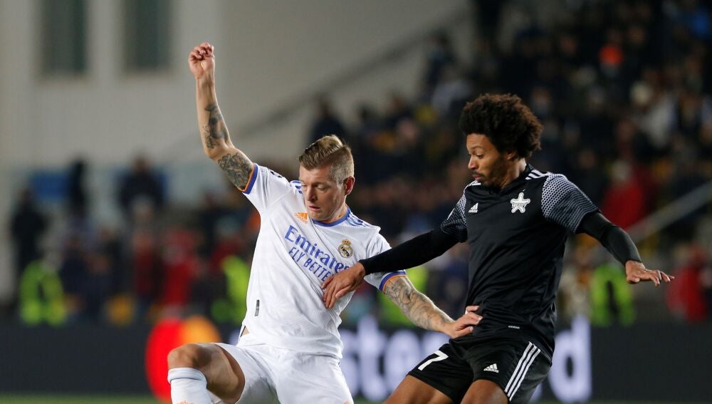 El Real Madrid se ha impuesto colosalmente al Sheriff Tiraspol en el Stadionul Sheriff por 0-3 con auténticos golazos de Alaba,Toni Kroos yKarim Benzema. La primera mitad ha sido conquistada por el Real Madrid tras dominar durante absolutamente los 45 minutos. El Sheriff apenas tenía jugadas peligrosas, y las pocas que tenían eran despejadas por la contundente defensa merengue. David Alaba abría el marcador a favor del Real Madrid tras una jugada que acababa en falta de Fernando Constanza sobre Casemiro que tuvo que ser atendido por las asistencias médicas, el gol de Alaba llegaba al disparar la falta directa sobre la frontal del área, y rebotando con un defensa del Sheriff, el balón acababa entrando imposible de parar para el guardameta Athanasiadis. El segundo del Real Madrid venía tras un increíble disparo del alemán Toni Kroos que estrellaba el balón al travesaño y este entraba por pocos centímetros.
