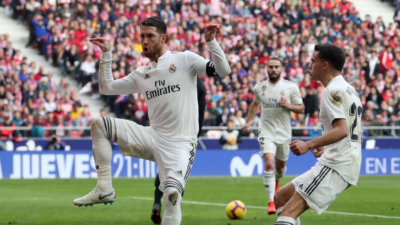 El brasileño, completamente solo. Solo porque hasta tres jugadores se lanzaron a por Sergio Ramos cuando el camero se elevó en el aire del Metropolitano. Nadie se quedó con el 14, que puso de tijera el cuero en las mallas de Oblak. Precisamente el andaluz hizo el segundo para que el Real Madrid llegara en ventaja al descanso. Fue de penalti, penalti que no fue por otra parte. La acción de Vinicius con Giménez fue fuera del área. El VAR, para nada. El árbitro ni fue a mirar la jugada.