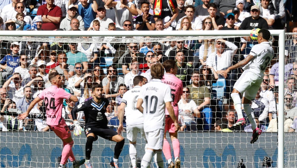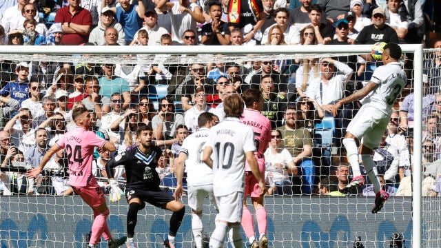 ¡Eder Militao! Remonta el partido el Real Madrid. Remató de cabeza un gran centro desde la banda para poner por delante a los blancos en el minuto 39.