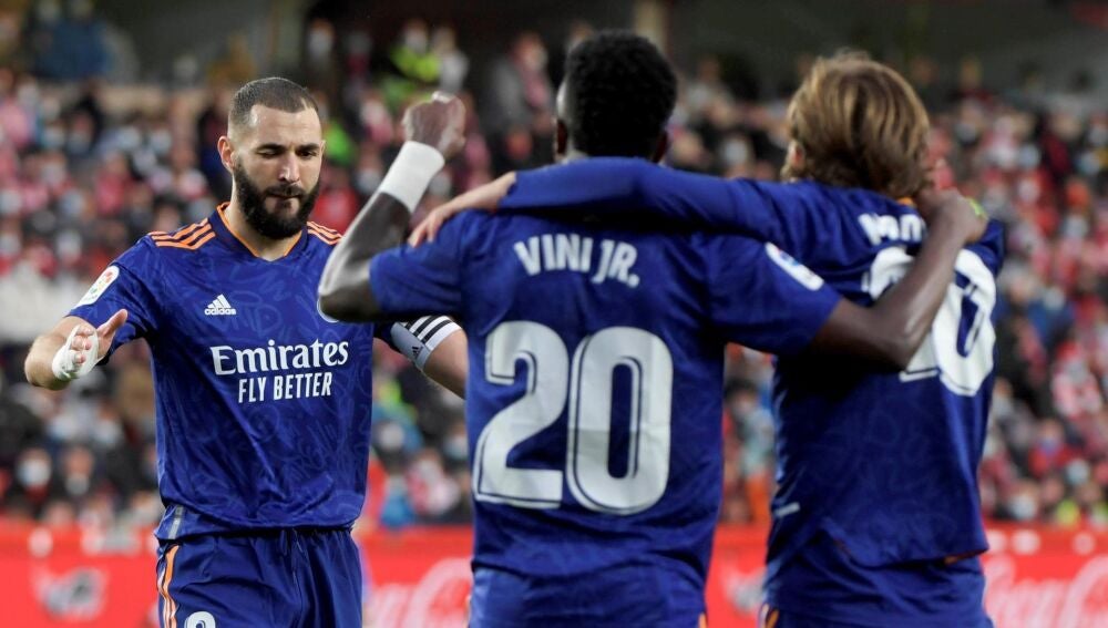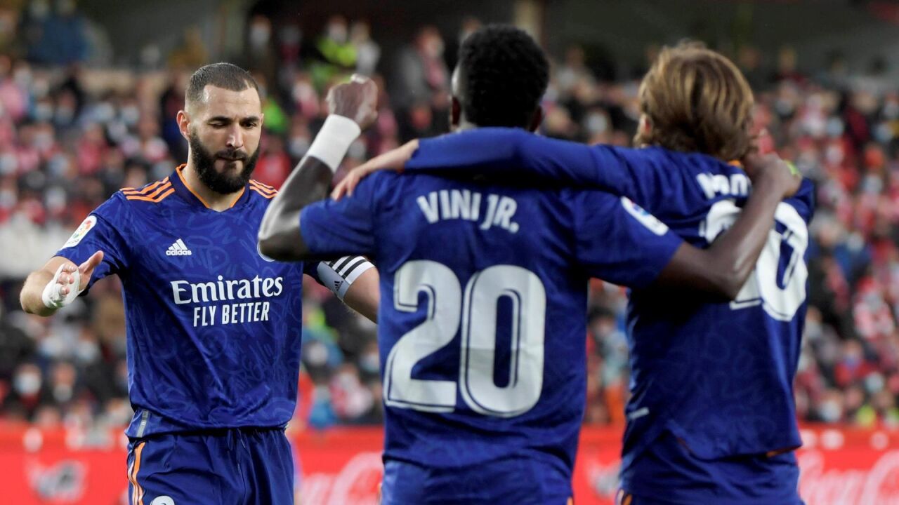 El Real Madrid encadena su tercera victoria seguida en LaLiga Santander al superar por 1-4 en el Estadio Nuevo Los Cármenes al Granada, que sufre su segunda derrota consecutiva y es incapaz de alejarse de los puestos de descenso. El Madrid asalta así el liderato del torneo a la Real Sociedad, que no ha pasado del empate 0-0 ante el Valencia en el cierre de la jornada.
