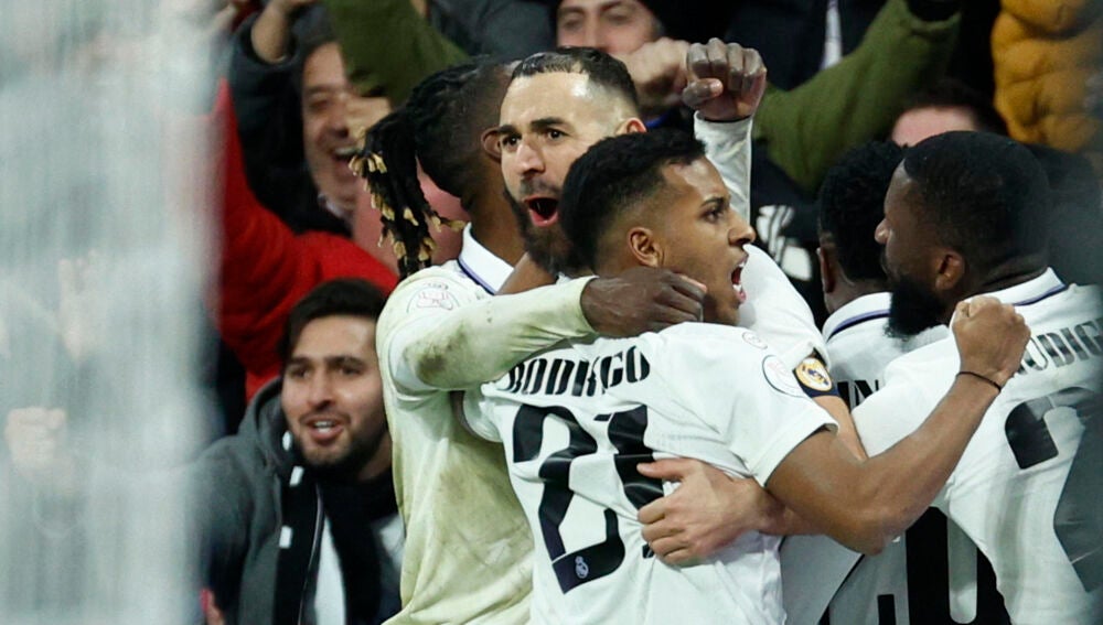 El Real Madrid de las remontadas ha sobrevivido a un derbi espectacular (3-1). Un gol del francés Karim Benzema, en el minuto 104 de a prórroga, y del brasileño Vinícius Junior en el 122+ culminó la remontada del Real Madrid en la ronda de cuartos de final de la Copa del Rey de fútbol frente al Atlético de Madrid, que arrancó con el tanto del brasileño Rodrygo Goes en el 78. Antes, en el minuto 19, Álvaro Morata había hecho el primer gol el encuentro para el conjunto rojiblanco.