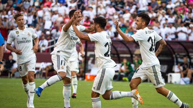 El primero llegó en el minuto 46, tras una gran carrera del flamante fichaje madridista que se adentró en el área con el balón pegado a los pies para acabar cediendo a un Asensio que llegaba desde atrás y que no encontró oposición para marcar al primer toque desde el punto de penalti.