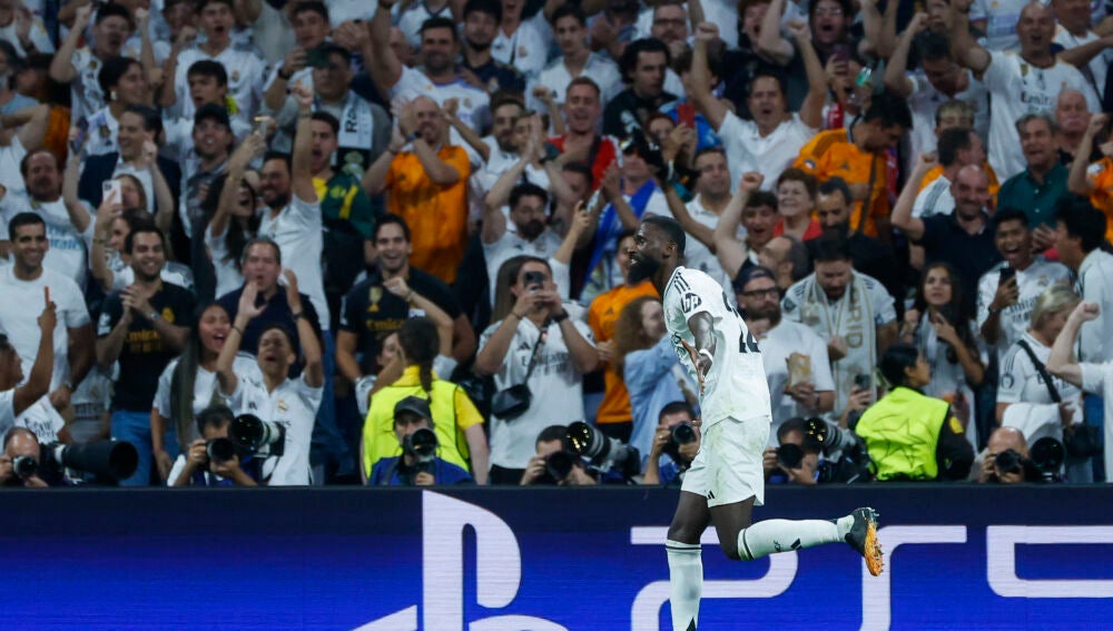 ¡Testarazooo de Antonio Rüdiger para desatascar el partido! Centro medido de Modric y remate del alemán con la coronilla para poner por delante a los suyos. El Real Madrid, el Bernabéu y la Champions...