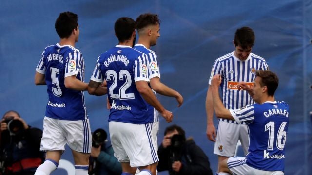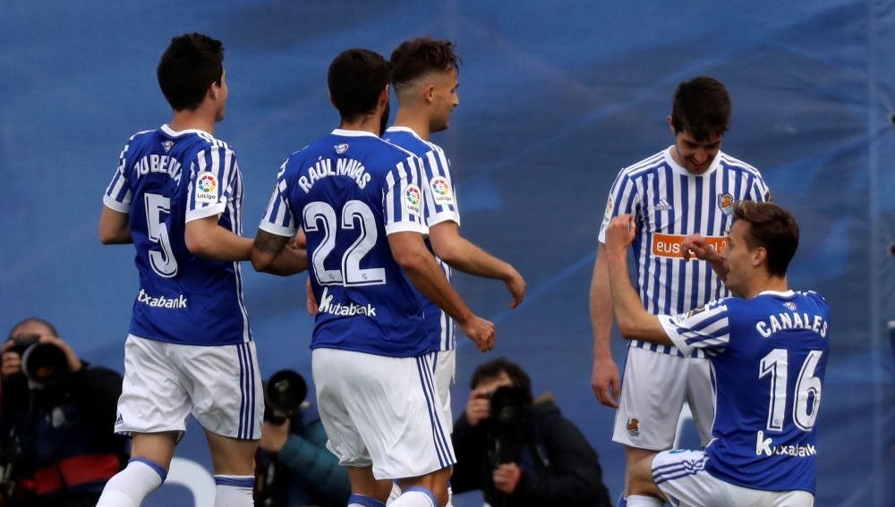 La Real avisó en el minuto uno, con el belga Adnan Januzaj, los catalanes se echaron atrás y dejaron la iniciativa a un conjunto blanquiazul que, en el minuto 11, conseguía el primer tanto, en un centro chut de Canales en el que la defensa visitante se durmió para encajar un gol infantil.