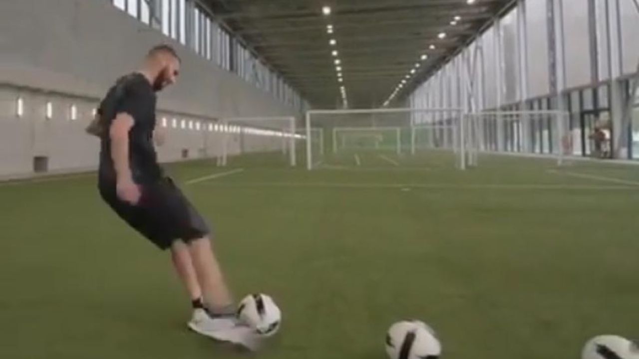 En el vídeo se ve como el futbolista con cinco balones delante inicia su particular lucha contra el cronometro, que para poco rebasados los once segundos. Para entonces, el galo ya le había dado cinco balonazos al travesaño.