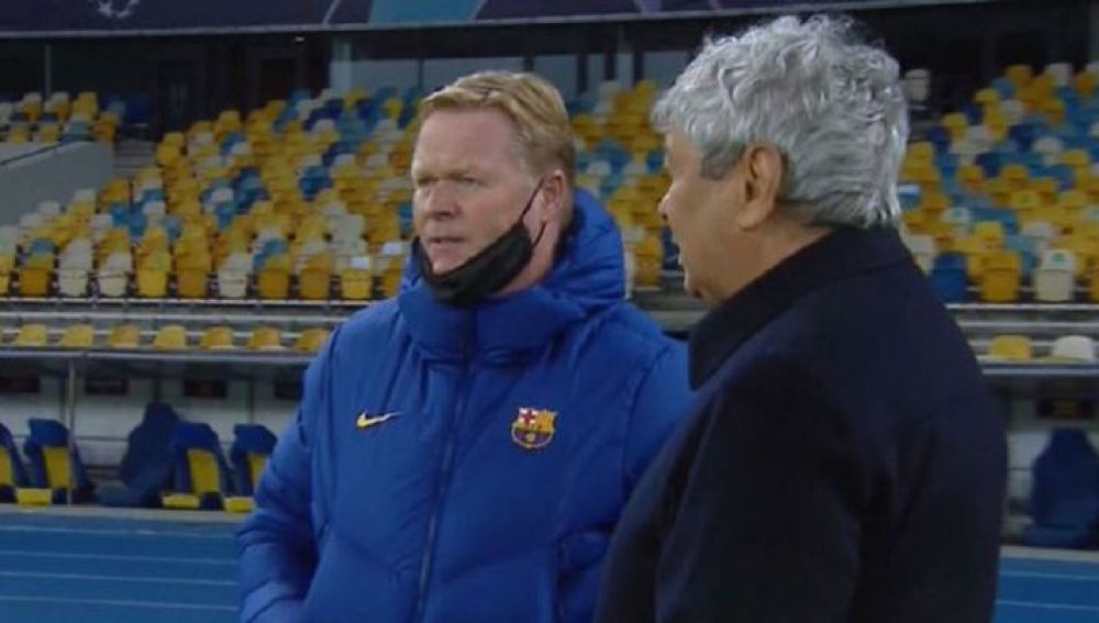 La conversación comenzó con Lucescu diciéndole que había visto el encuentro contra los rojiblancos. "La primera parte jugasteis bien, vuestro juego fue bueno". A lo que Ronald Koeman respondió: "Ellos defendiendo son muy buenos. son muy fuertes en defensa. Estamos teniendo mala suerte con las lesiones. Ansu Fati va a estar fuera tres meses, Piqué quizá esté fuera cuatro o cinco meses, Sergi Roberto dos...", dijo Koeman con gesto preocupado.