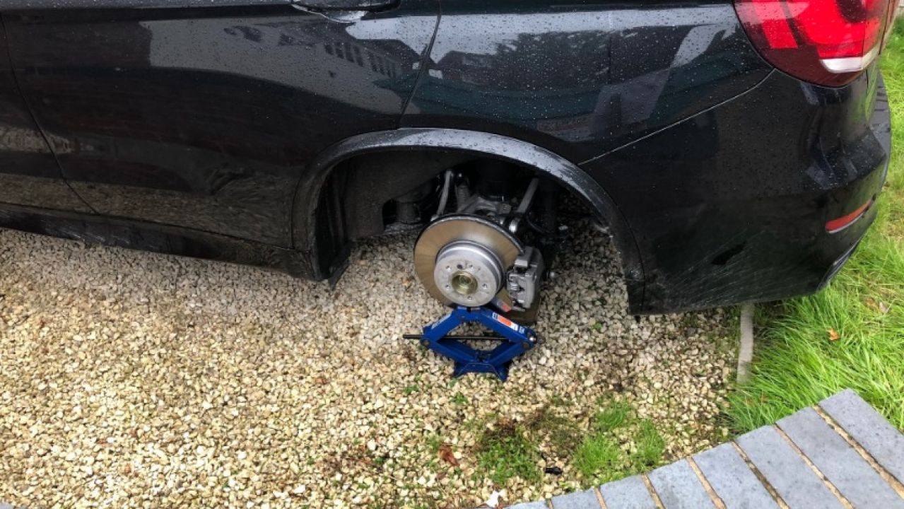 "Es bueno despertar y ver que una escoria ha venido y ¡ha robado todas mis ruedas! Cualquier persona que le hayan ofrecido cuatro ruedas de un X5 con los neumáticos de Dunlop hacérmelo saber", escribió Bennett.