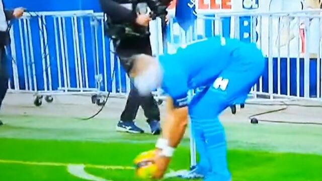 Nueva vergüenza en el fútbol francés: la estrella del Marsella recibió el impacto de una botella llena de agua en plena cara.