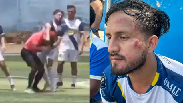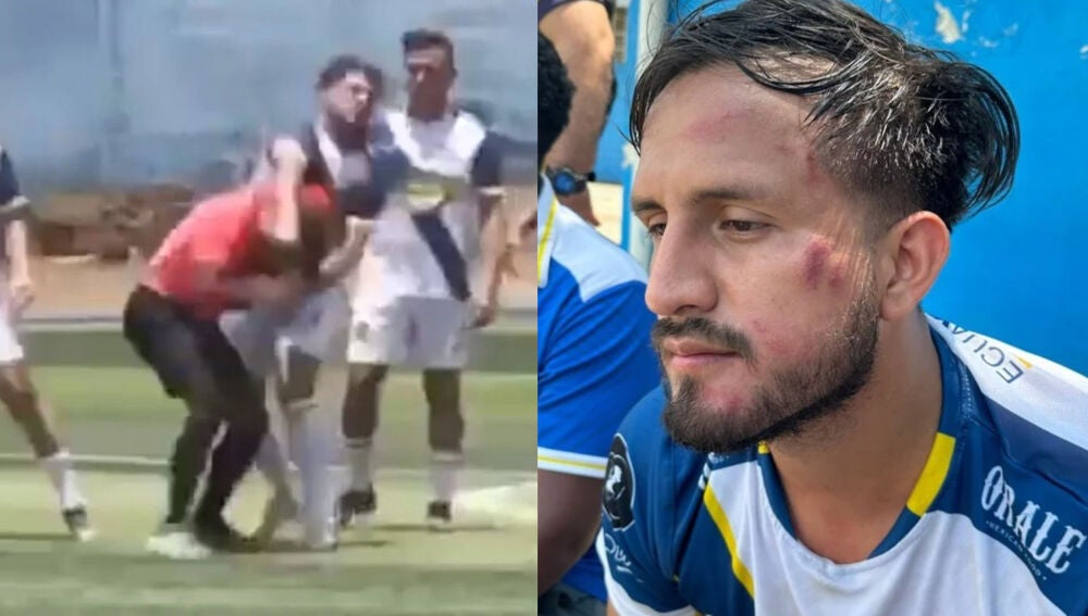 En ese momento empezó una batalla campal en la que el colegiado trató de defenderse. La imagen se ha hecho muy viral en redes en las últimas horas. Más tarde, el periodista Andrés Illingworth publicó cómo quedó la cara del jugador tras esta pelea más propia de boxeo que de fútbol.