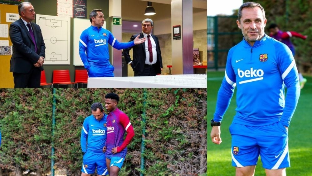 El nuevo entrenador interino del Barcelona ha dirigido la primera sesión con el primer equipo antes de su estreno en el banquillo frente al Alavé
