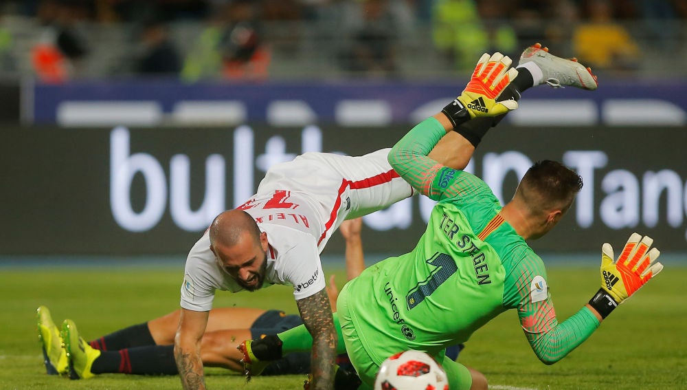 Ter Stegen fue el héroe del minuto 90 del Barça cuando cerca estuvo de poder ser el villano. El alemán cometió penalti sobre Aleix Vidal para posteriormente pararlo en una acción que él mismo reconoce que fue pena máxima. Al final, la Supercopa de España fue para los de Valverde.