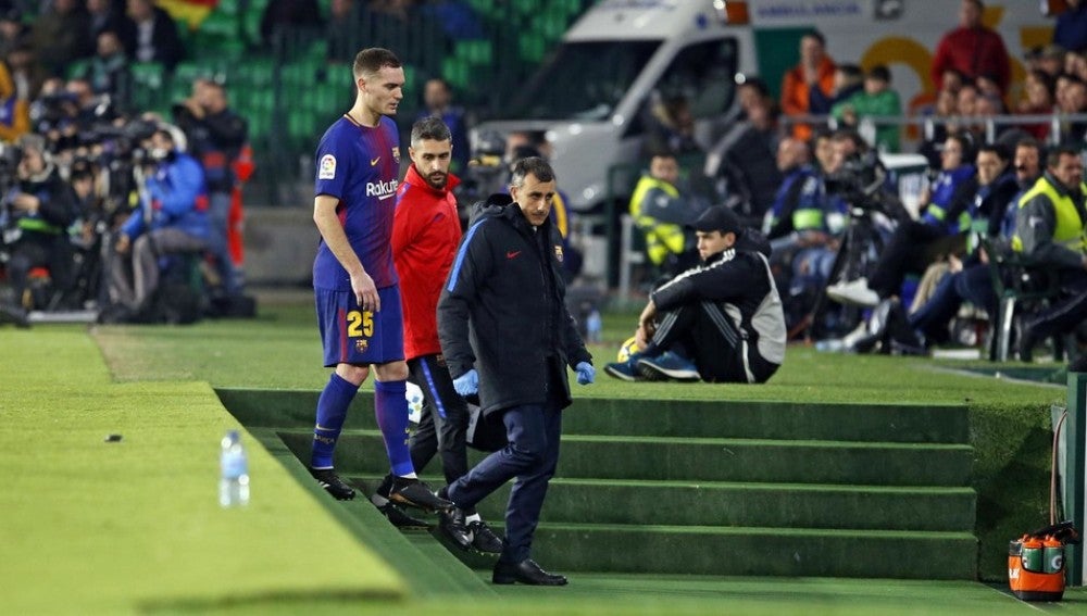 El central tuvo que ser sustituido por Samuel Umtiti en el minuto 41 del enfrentamiento entre el Betis y el FC Barcelona (0-5).