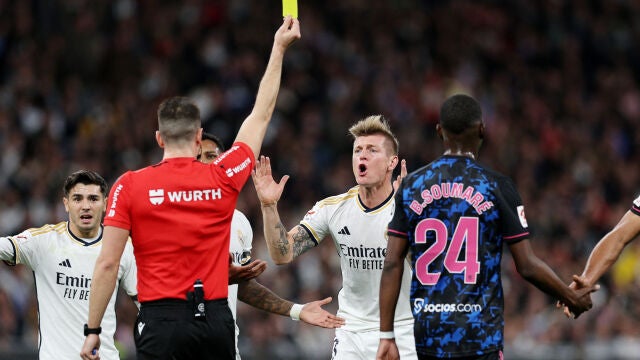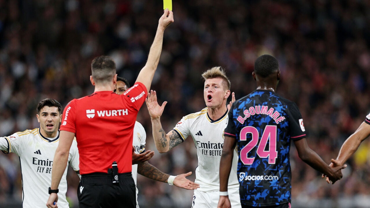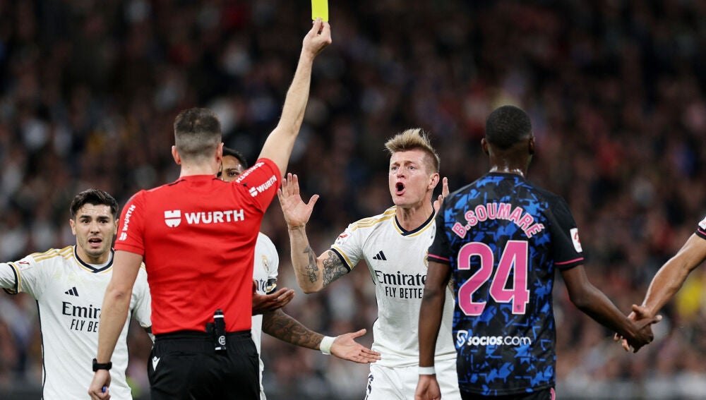 "Creo que durante toda la primera mitad nos pitaron todo lo que estaba al límite de ser falta. Incluso cosas que no eran falta en absoluto. Lo que me enfadó tanto de mi acción fue que en realidad estaba a un metro de distancia. Eso fue una locura. Básicamente me alejo del oponente. Veo que empieza a regatear en su propia área y que simplemente quiere chocar conmigo. Luego incluso me alejo para que no tenga mucho contacto conmigo, pero el árbitro lo ignoró", describe Kroos sobre la jugada en que vio la cartulina amarilla.