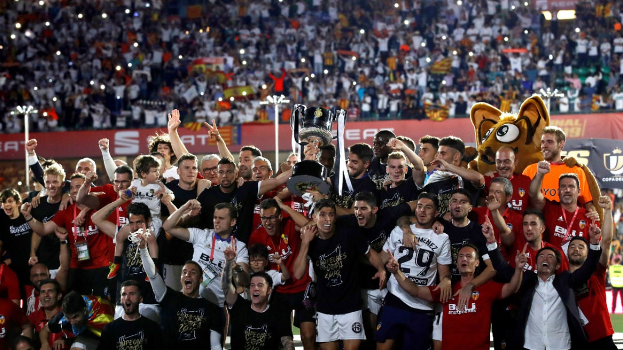 El Valenciaha puesto el broche de oro a una temporada para el recuerdo. Y quién habría pensado en esa frase en el mes de enero cuando el descenso estaba más cerca que la Champions. Los che, aparte de volver a jugar la máxima competición europea la próxima temporada, despiden el curso con la Copa del Rey tras ganar 1-2 al Barcelona. Heroico el equipo de Marcelino en Sevilla.