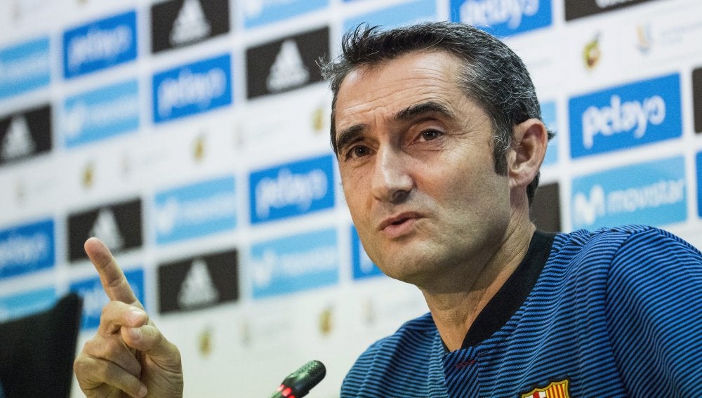 El técnico del Barcelona, Ernesto Valverde, no quiso entrar a valorar los cinco partidos de sanción a Cristiano Ronaldo por empujar al colegiado en la ida de la Supercopa de España. "Admitir que el contrario es superior por sistema no lo admitimos. Pero reconocer que fue más certero en un partido concreto, sí. Ni el Madrid, ni el Atlético, ni Bayern es mejor que nosotros", explicó Valverde.