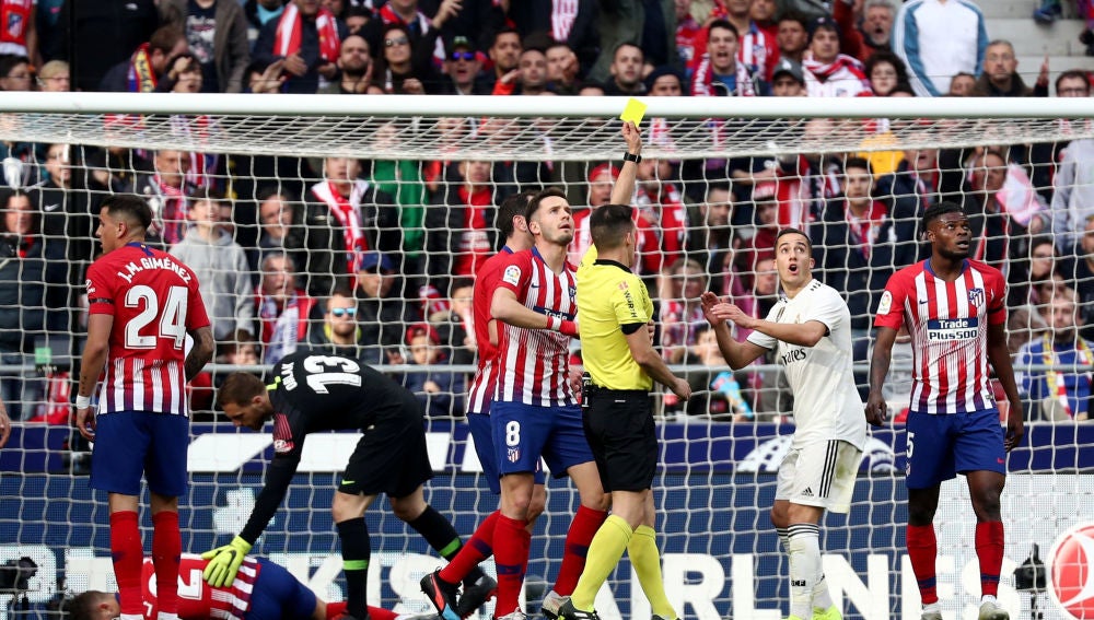 Dos acciones muy polémicas marcaron la primera parte del derbi madrileño en el Metropolitano. Ambas fueron revisadas por el VAR con especial detalle y fue una favorable para cada equipo.