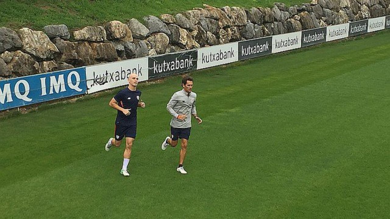 El central del Athletic de Bilbao, que padece un tumor testicular, se ha entrenado realizando trabajo físico con el recuperador, Xabi Clemente. Aunque ha sido media hora de entrenamiento, el jugador no quiere perder el ritmo. Además, también ha tocado balón.