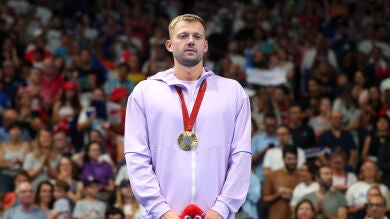 Illia Yaremenko y Oleksii Virichenko evitaron saludar y posar con las medallas junto a Ihar Boki, deportista de Bielorrusia que compite bajo la bandera neutral