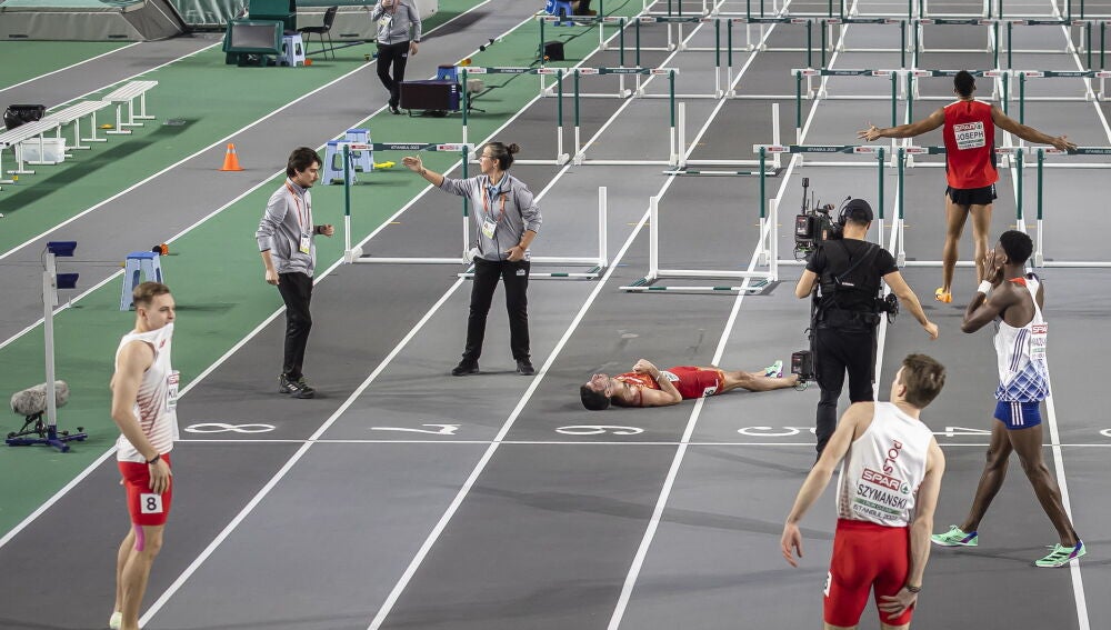 Llopis se quedó tendido en la pista y lo peor llegó con la reacción de sus rivales. Y es que ninguno de los atletas que participaron en la final se acercaron al español para preocuparse por su estado. Incluso el ganador, el suizo Jason Joseph, pasó por su lado celebrando su victoria.