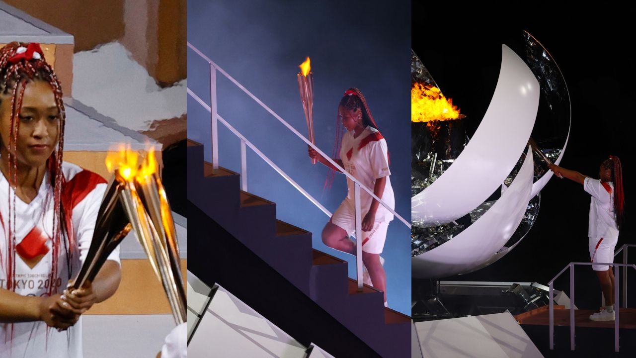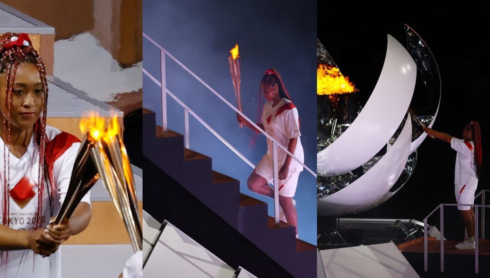 Poco antes de las 5 de la tarde se desvelaba el misterio. La tenista Naomi Osaka era la encargada de portar el último relevo de la antorcha olímpica y, tras ascender la escalinata hasta lo alto de la recreación del monte Fuji, encender el pebetero olímpico de los JJOO de Tokio 2020.