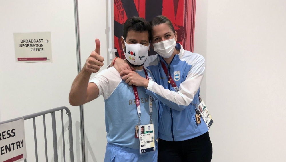 Y es que esta deportista argentina estaba siendo entrevistada en el canal TyC Sport argentino tras ser eliminada en la modalidad de sable de los JJOO de Tokio 2020 cuando su pareja y entrenador, Lucas Saucedo, apareció a su espalda portando un cartel.