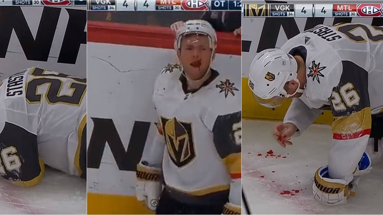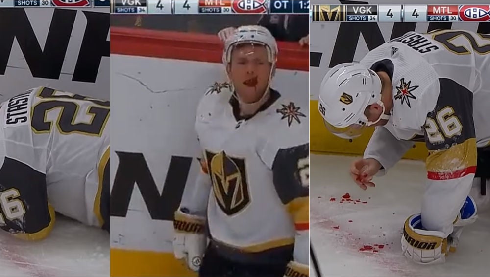Paul Stastny, jugador de Las Vegas Golden Knights, sufrío un terrible golpe en la cara con un disco lanzado por un rival. Perdió varios dientes y acabó, con la boca ensangrentada, recogiéndolos del hielo