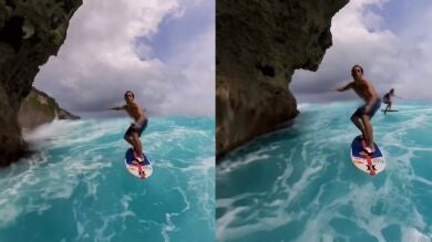 El surfista hawaiano ha dejado helados a todos sus seguidores con un vídeo en el que se le ve surfeando una ola con su foil a escasos centímetros del acantilado de Uluwatu, en Bali (Indonesia).