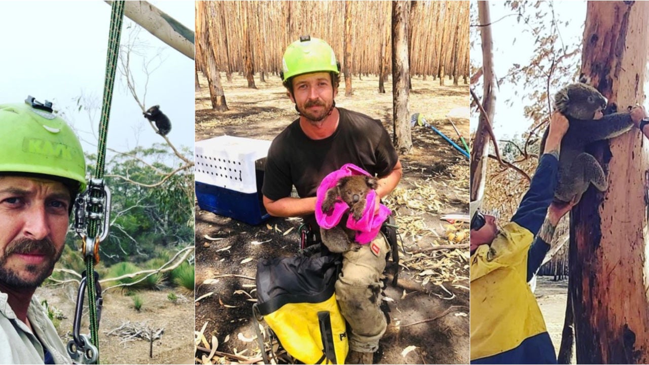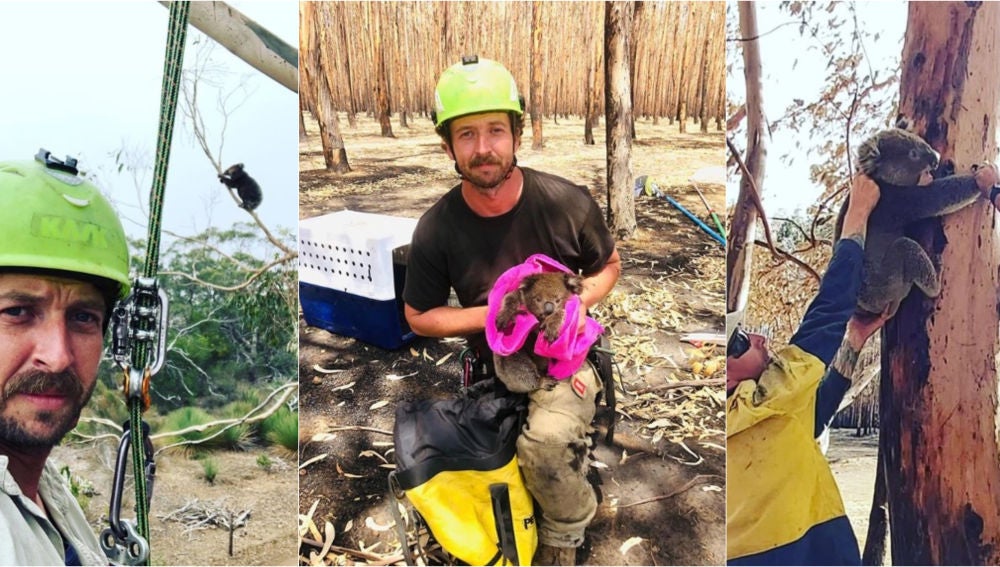 Su habilidad trepando árboles ha convertido a Kailas Wild en el salvador de decenas de koalas atrapados en mitad de los incendios de Australia. "Vi que necesitaba ayuda en 'Kangaroo Island'. Me siento privilegiado al poder estar aquí y ayudar", explica el propio Kailas.