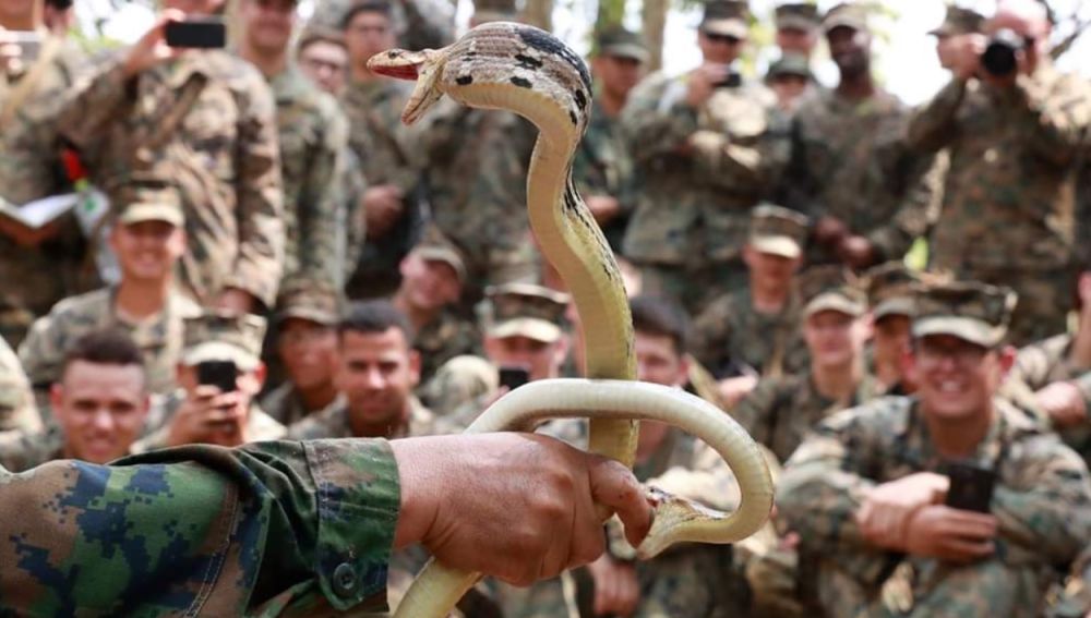 Allí se ha podido ver como los marines se bebían la sangre de una cobra decapitada, que aseguran es una buena forma de hidratación en situaciones de emergencia, o como comían escorpiones y todo tipo de animales venenosos.