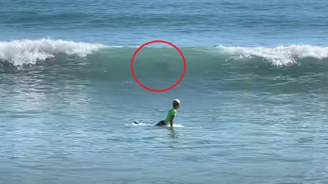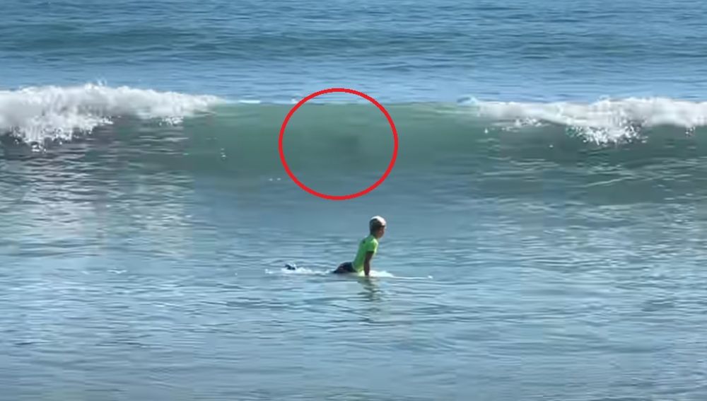 La madre de este joven surfista ha explicado que el vídeo en cuestión corresponde a un momento posterior a esa escena, pero aún se puede ver a uno de los tiburones nadando justo a lado de su hijo.