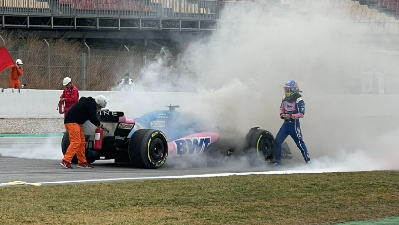El Alpine A5-22ya ha dejado tirado a Fernando Alonso en el último día de los test de pretemporada de Fórmula 1 en Montmeló. El coche del asturiano se ha parado en la curva 13 y ha comenzado a salir una gran humareda que ha preocupado al español y a su equipo.