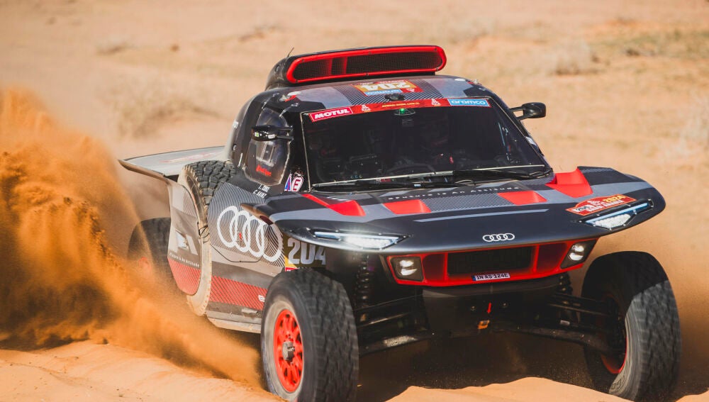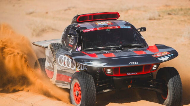 El madrileño sobrevivió a otra dificilísima etapa y ya manda con algo menos de dos minutos sobre Al Rajhi. Peterhansel cumple 50 victorias.