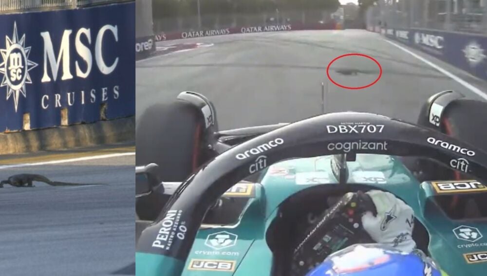 Lo cierto es que el reptil estuvo sobre la pista varias vueltas, hasta que Fernando Alonso acabó atropellando al reptil de forma fortuita antes de entrar en una curva del trazado de Marina Bay. El asturiano no pudo hacer nada por evitar al lagarto, en plena trayectoria del Aston Martin.