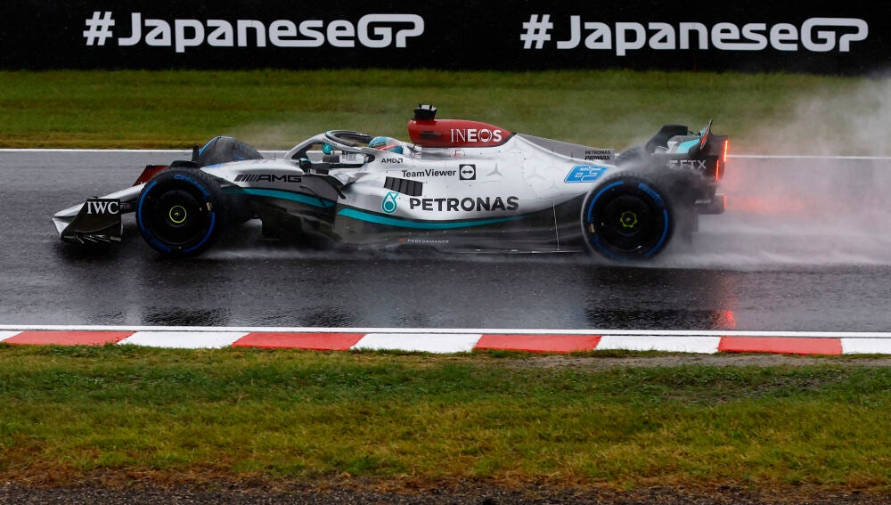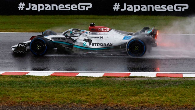 Los Mercedes de George Russell y Lewis Hamilton lograron los mejores tiempos en la segunda sesión de libres del GP de Japón. Carlos Sainz acabó con el sexto mejor tiempo y Fernando Alonso, en séptimo lugar. Jornada marcada por la lluvia.