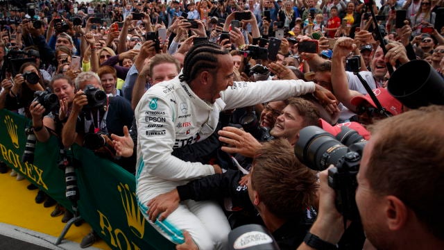 "¡Qué día, qué día!", comentaba exultante a través de la radio de su monoplaza Hamilton después de cruzar primero la línea de meta del Gran Premio de Gran Bretaña, alargando la distancia que le mantiene como número 1 del mundo.