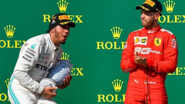 El alemán Sebastian Vettel con el Ferrari concluyó en tercera posición una carrera en la que el español Carlos Sainz fue quinto, por detrás del otro coche rojo, el del monegasco Charles Leclerc.