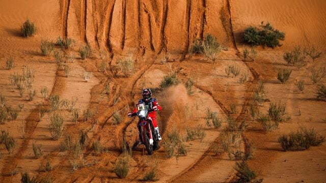 Sam Sunderland (Gas Gas), nuevo líder del Dakar, no apareció en ningún punto de control de la organización hasta el último, cuando se coló segundo de la etapa. Tercero fue el argentino Kevin Benavides (KTM), quien fue poco a poco cogiendo ritmo hasta que se colocó en los mejores tiempos consciente de que tenía que recortar tras sufrir con la navegación en la jornada del domingo.