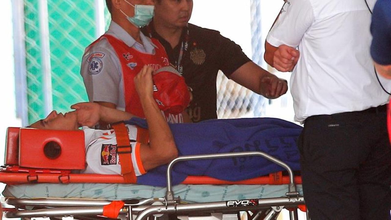 "Una vez estabilizado y comprobado que no había ningún compromiso orgánico importante hemos decidido hacer radiografías en el centro médico de la zona torácica, vertebral y tibia, en donde no había nada apreciable, como tampoco en la zona del glúteo, y en la zona vertebral no veíamos bien, estaba muy artefactada, y hemos decidido hacer una resonancia nuclear magnética en el hospital de Buriram desde la zona cervical hasta la sacra, sin encontrar ninguna lesión ni edema óseo ni contusional, aunque sí había una contusión en la zona para-vertebral, pero ni fisura ni fractura", tranquilizó el Director Médico de la competición, quien dijo que el piloto estaría ya disponible para los segundos libres.