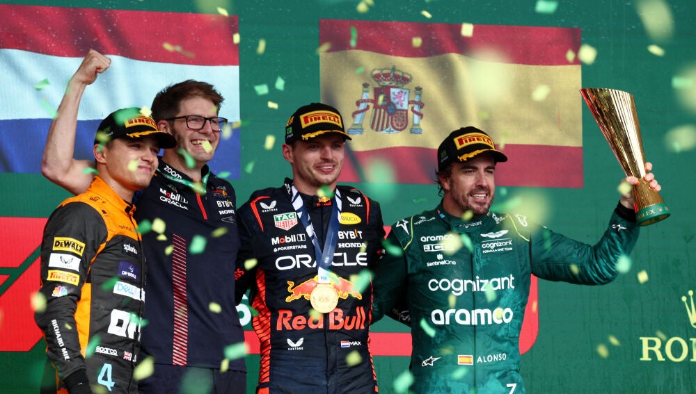 "Aston (Martin) dio un buen paso, llevaban muy baja carga en la carrera y parecía funcionarles porque eran muy rápidos en las rectas. Checo hizo un buen trabajo. En el software, sobre todo al final, se podía ver que era más rápido, pero Fernando es un perro viejo y posicionaba muy bien el coche. Fue una bonita pelea entre los dos, entretenida", aseguró Horner.