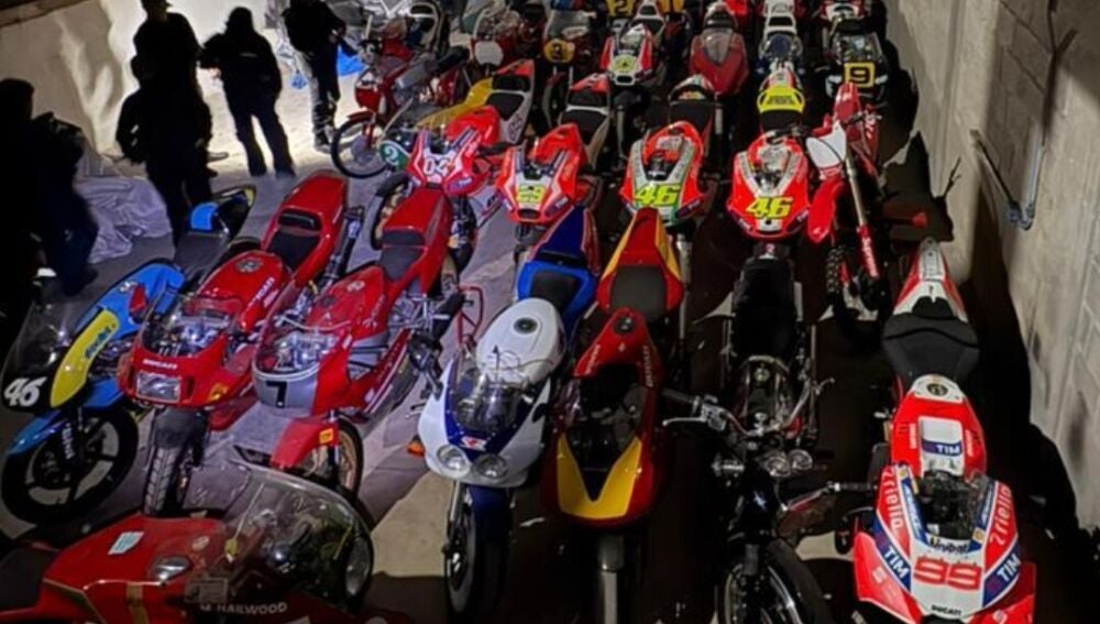 Entre las máquinas incautadas han aparecido auténticas piezas de museo del motociclismo mundial. La colección incluye varias Ducati de MotoGP que fueron pilotadas por figuras históricas como Valentino Rossi, Jorge Lorenzo, Andrea Dovizioso, Loris Capirossi o Andrea Iannone.