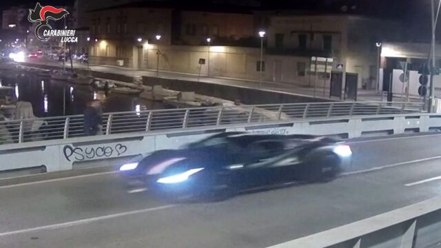La policía italiana ha publicado también la grabación de las imágenes del piloto, subido a su Ferrari, buscando por las calles a los cacos.