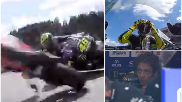 La moto de Zarco continuó rodando y cruzó la trazada de los pilotos sin que afortunadamente alcanzara a ninguno de ellos. Pero la moto de Morbidelli pasó aún más cerca, tanto que fue un milagro que no impactara con Valentino Rossi y Maverick Viñales, que pasaban por la curva justo en ese momento.