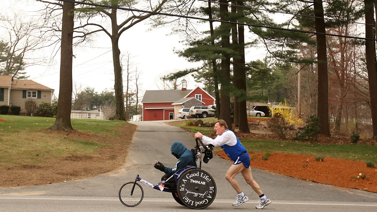 Padre y hijo completaron juntos más de 1.000 carreras entre maratones, ironmans y triatlones, sin embargo, lo más especial de esta historia es que Dick recorría todas esas carreras empujando la silla de su hijo con parálisis cerebral.