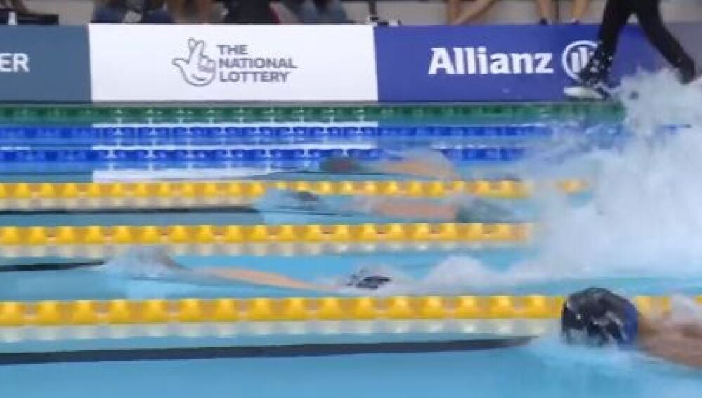 El nadador chino Jincheng Guo sorprendió a todo el mundo de la natación, además de los allí presentes, manteniéndose bajo el agua a lo largo de casi toda la prueba.