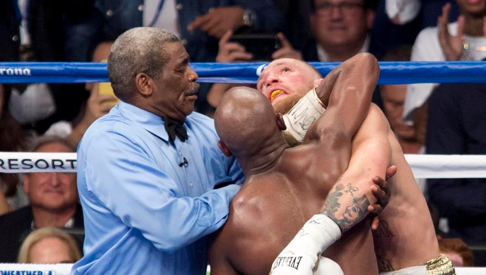 McGregor terminó acorralado en el décimo asalto por el boxeador local y el colegiado Robert Byrd detuvo la pelea dando el 50-0 a Mayweather. "Déjame volver a mi esquina, déjame intentarlo y recomponerme, vas a tener que echarme de aquí", añadió.