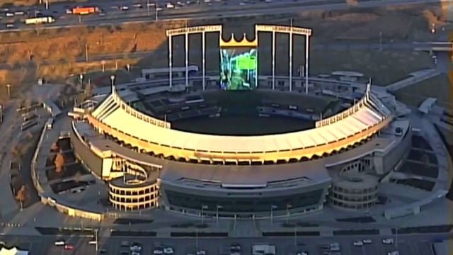 Un helicóptero de una cadena de noticias grabó con su cámara como un grupo de personas estaban jugando al 'Mario Kart' dentro del estadio en la pantalla gigante. El estadio es el Kauffman, hogar del equipo de béisbol Kansas City Royals.